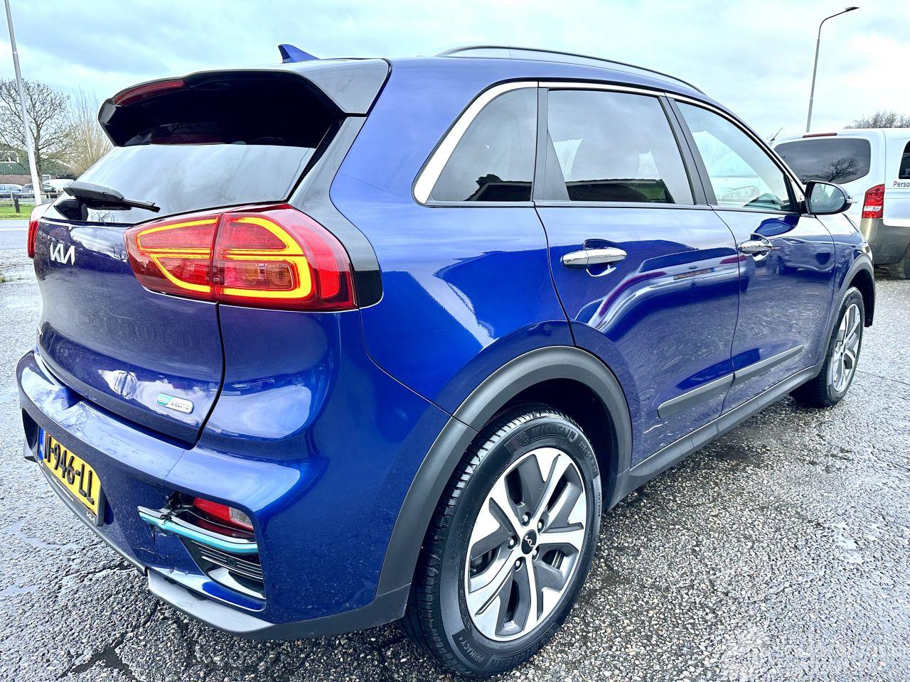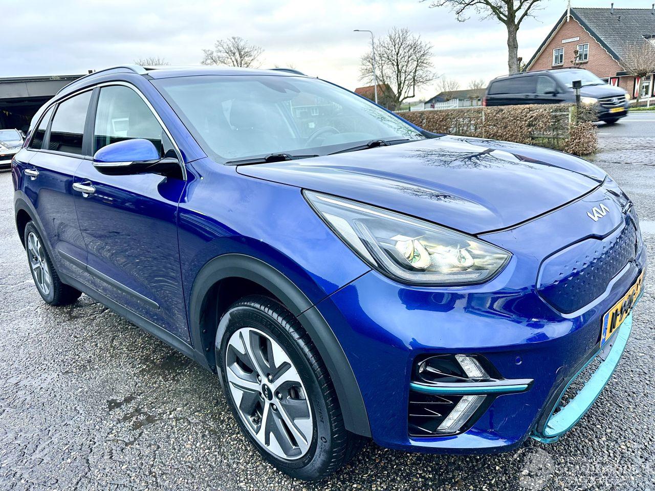 Bomvolle Dynamic.Plus.line 64kWh automaat + flippers (stuurschakeling) - boekjes + 2x keyless sleutels op afstandbediening - org NL auto + NAP - elektrische schuif/kanteldak - STUURVERWARMING - APPLE CARPLAY + ANDROID - half leer/stof + stoelverwarming voor - lmv - line + front assist - clima + cruise control - stuurbediening + F1 stuur schakeling - virtual cockpit - bleutooth tel lader - KEYLESS ENTRY + START - licht + regensensor + aut dimmend binnenspiegel - navi prof - touchscreen multimedia - achteruitrij camera - pdc voor + achter (parkeersensoren) - privacy glass - chroompakket - full xenon led koplampen + full led achterlichten - led in voorbumper - mistlampen voor - ACTIERADIUS WLTP van maar liefst 455km - zeer mooie en nette Kia e-Niro Electric 64kWh