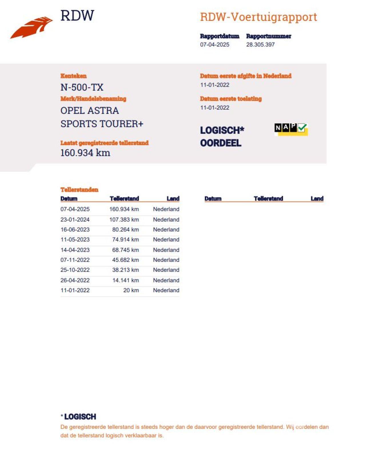 Kilometerstand: 160.934 KM
