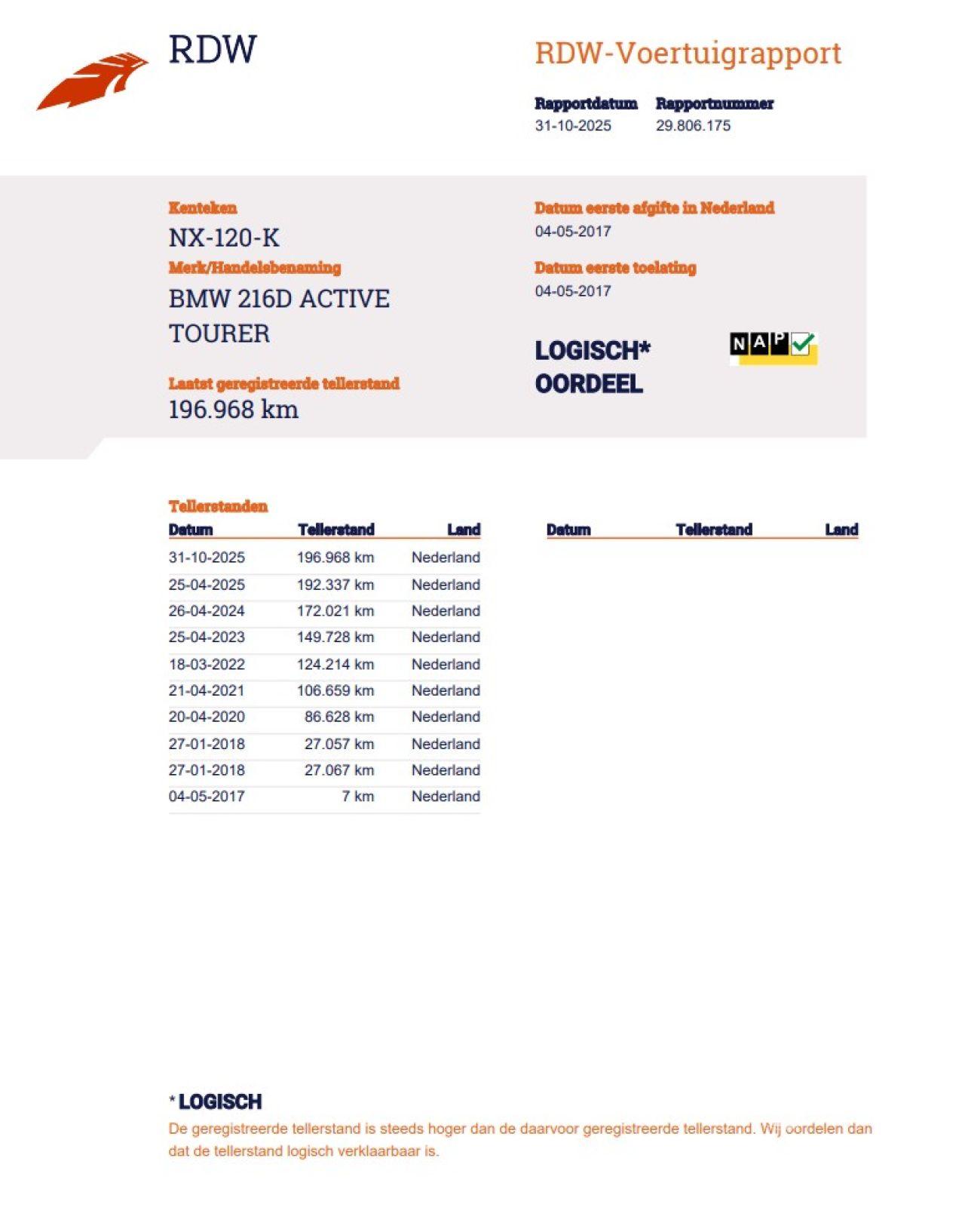 Verificación del kilometraje (NAP)