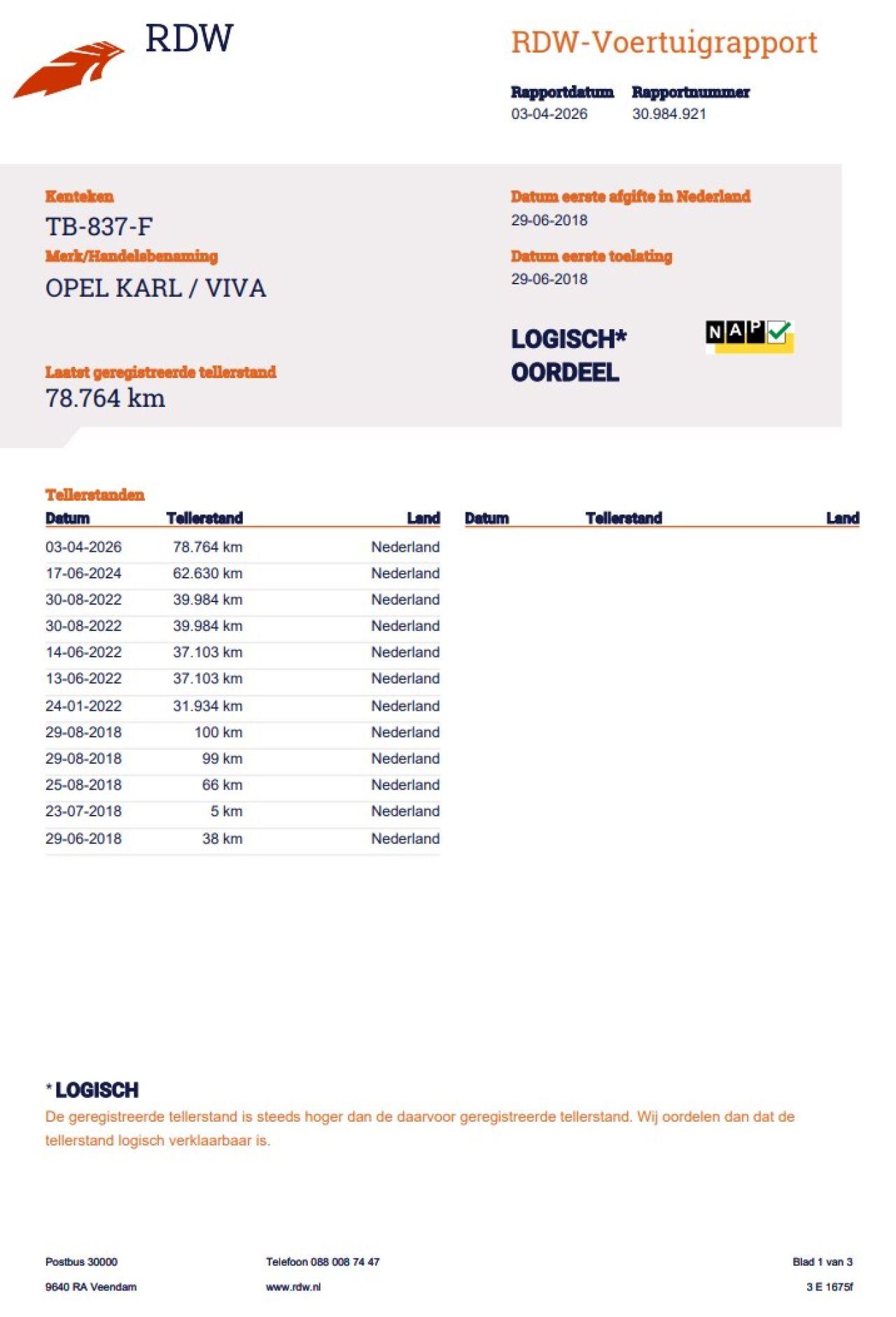 Verificación del kilometraje (NAP)